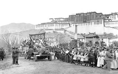 1955年1月11日,川藏、青藏公路的通车典礼在拉萨举行。新华社记者刘诗临、任用昭摄