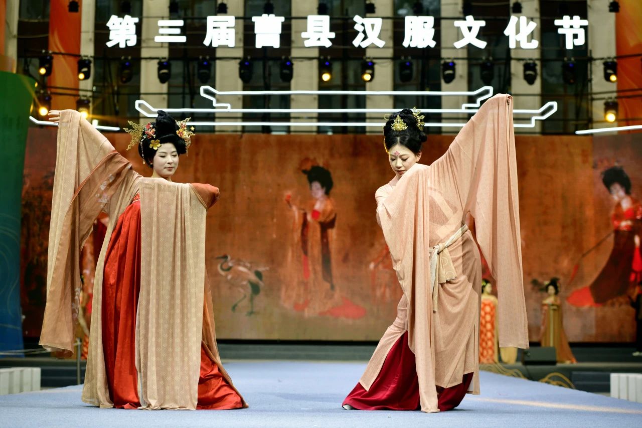 ▲在曹县e裳小镇数字经济产业园,模特在曹县汉服2025春夏新品发布会上走秀(4月10日摄)。新华社记者郭绪雷摄